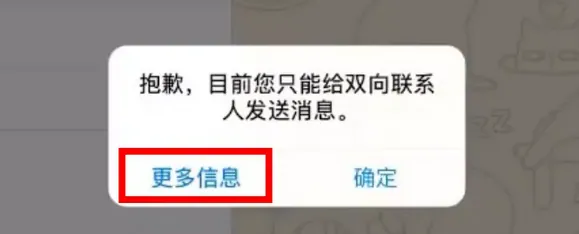 私聊错误提示:“Sorry, you can only send messages to mutual contacts at the moment.”这表示你的账号被限制为仅限双向联系人发送消息。